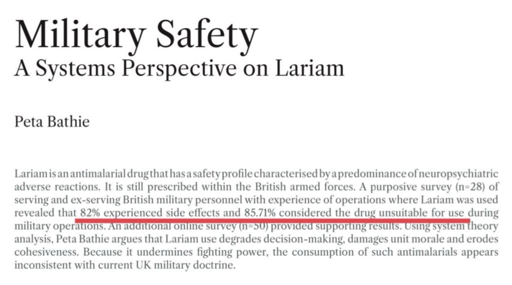 For decades, the adverse effects of Lariam have been downplayed, dismissed as rare, transient, or “just the balance of risk versus malaria.” Yet the reality faced by too many veterans tells another story.