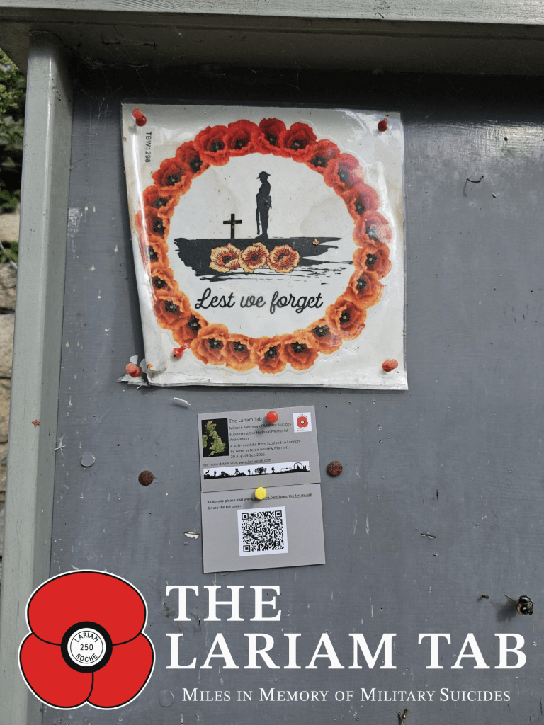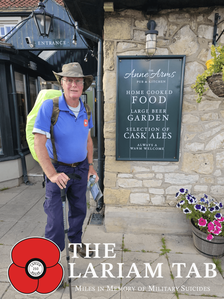 Later, we stopped at the Anne Arms (annearms.co.uk)a fantastic place for a quick bite and a drink. The kindness we received there was humbling: the pub generously donated ÂŁ50 to the JustGiving fund for the National Memorial Arboretum, and a customer quietly added another ÂŁ20 in cash. Acts like these show how deeply this cause resonates, and how far the impact of military suicide reaches into communities.