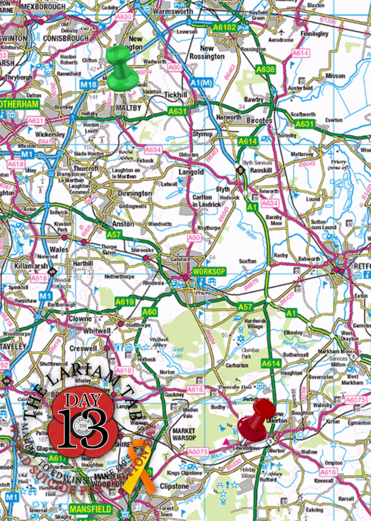 Today’s stage of #TheLariamTab took us 19.5 miles from Maltby to Edwinstowe, a route filled with both history and reflection.
